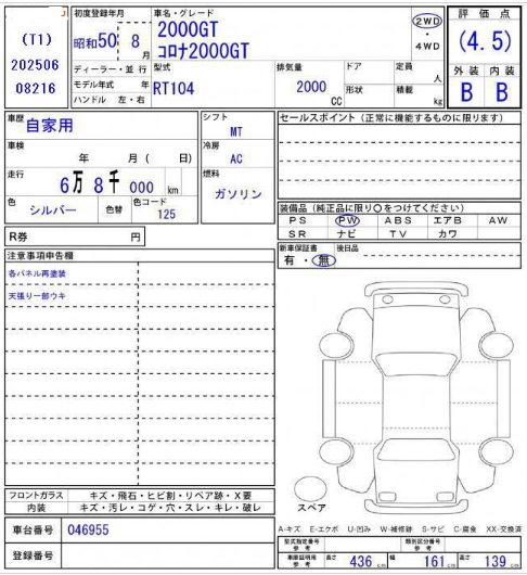 | Chassis No. | RT104-046955 | Model Code | Corona 2000GT |