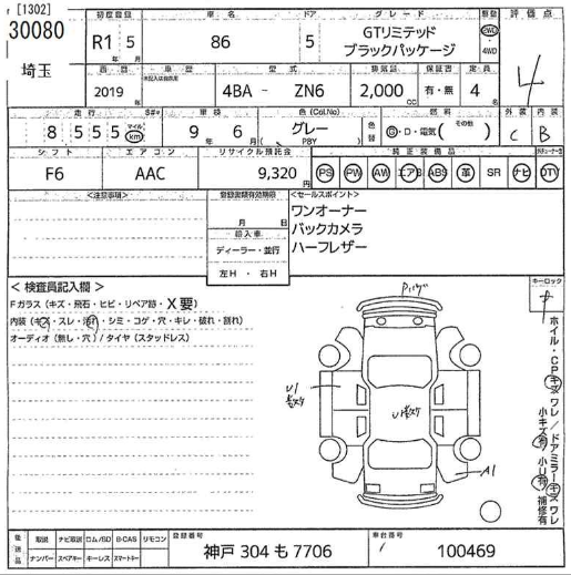 | Chassis No. | 4BA-ZN6-100469 | Model Code | GT LTD Black Package |