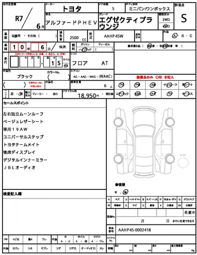 Chassis No.6LA-AAHP45W-0002418Model CodeExecutive Lounge