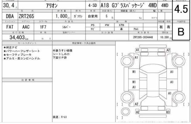 | Chassis No. | DBA-ZRT265-3034448 | Model Code | A18 G Plus Package 4WD |